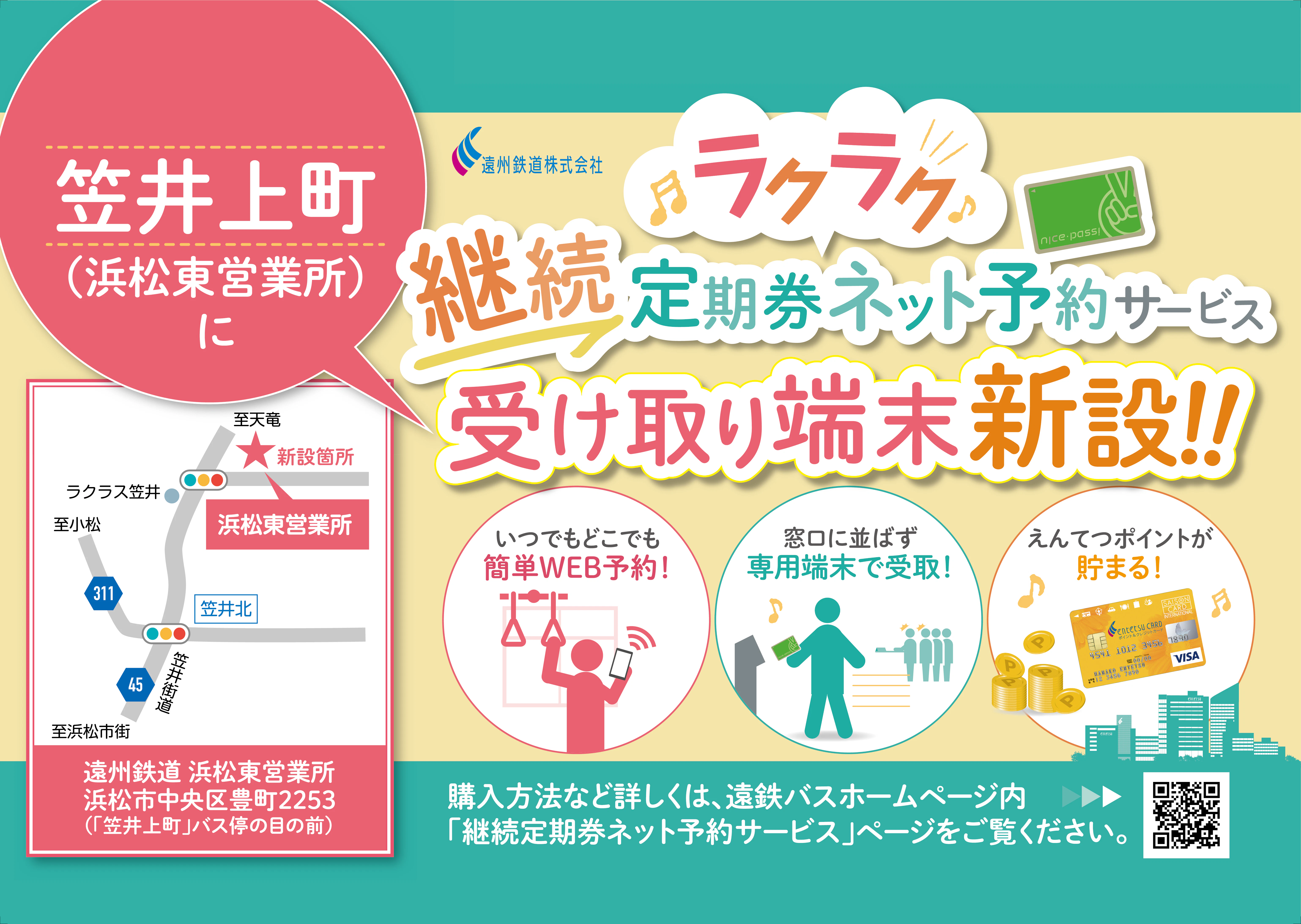 継続定期券ネット予約サービス 笠井上町(浜松東営業所)への受取専用端末設置について
